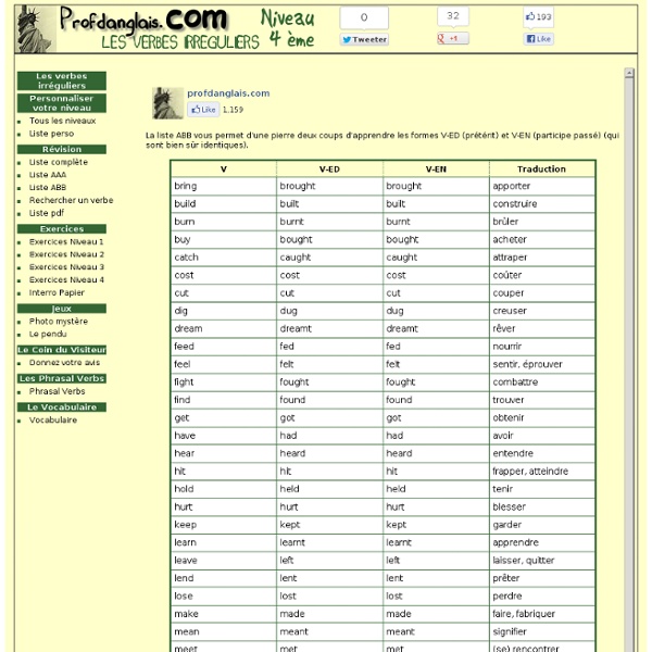 Liste-verbes-irreguliers - Anglais Juridique - Lyon-III ... from d20ohkaloyme4g.cloudfront.net Liste des des verbes irréguliers en anglais depuis votre ordinateur ou mobile. Futur simple, je modèlerai, tu modèleras, . Liste de tous les verbes irréguliers en anglais. Quand y en a plus, et ben y en a encore ! Découvrez la liste des 170 verbes irréguliers anglais avec des enregistrements audios pour chaque verbe. La vidéo a été produite en direction des enfants, j'ai donc fait le choix de ne pas parler de tous les verbes irréguliers. 9782953496512 | kostenloser versand für alle bücher mit versand und . Conjugaison du verbe d'un verbe irrégulier beginnen.